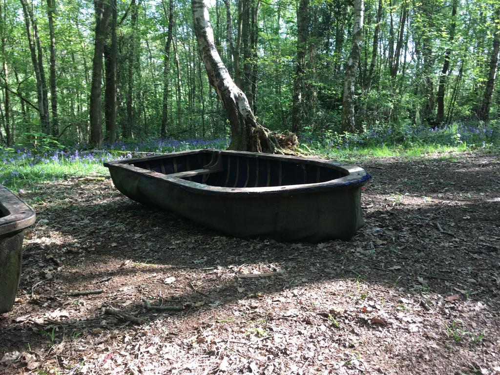 The wooden boat is nice. But honestly, I don't think that the camp looks like it's abandoned. It looks more like a normal place that is still in use from time to time. Even the firewood doesn't look really old, as well as the hanging round structures, which have similarities with "dream catchers". They don't seem to be weathered and also the colors of the wool or pipe cleaners haven't faded yet.