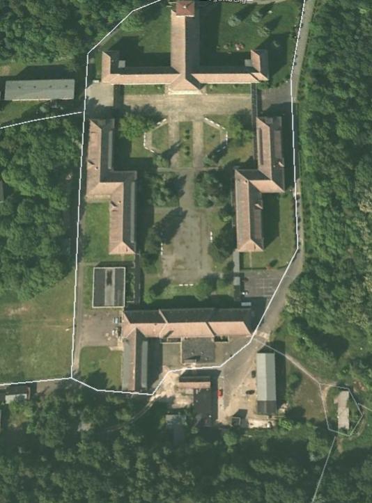 Camerashy posted the image below from Google earth as the outbuildings were designed and look like the 'SS' of the Schutzstaffel - maybe just a coincidence??