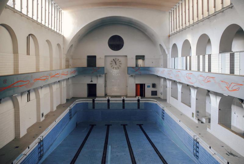 A re-use as a swimming pool has been considered to be unprofitable so far. It´s a pity to see such amazing architecture in the state of decay.